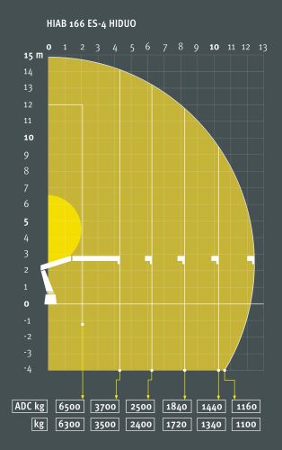 Mit dem robusten, weit ausladenden Kran erreichen wir auch entfernte Stellen auf der Baustelle, um Stück- oder Schüttgüter zu laden. Dank robuster Achsen und Differenzialsperre meistert unser Kranwagen „Josef“ selbst unbefestigte Wege souverän – also der perfekte Kranwagen für Remshalden und Umgebung. Die Abbildung zeigt, welche Lasten bei welcher Auslage möglich sind.