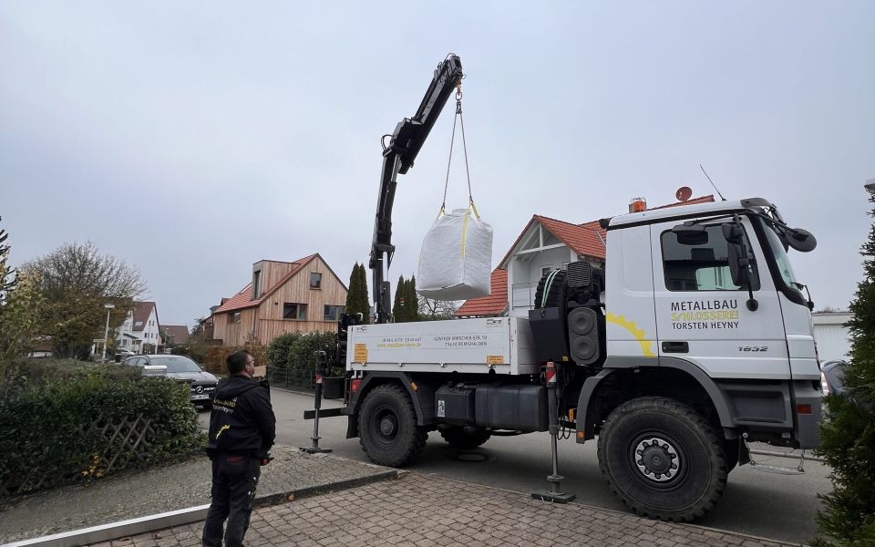 „Gestatten, Josef!“ – Denn nur Dinge mit Namen bleiben in Erinnerung. Und weil unser Kranwagen so viele beeindruckende Einsätze meistert, hat er sich seinen Namen redlich verdient. Warum gerade Josef? Das verrät Ihnen unser Chef Torsten Heyny am liebsten persönlich. Aber viel wichtiger: Josef steht Ihnen inklusive Fahrer zur Verfügung! Egal ob in Remshalden, im Rems-Murr-Kreis oder rund um Stuttgart – unser Ladekran-LKW macht Ihre Schwerlastprobleme im Handumdrehen leichter. Mit dem eigenen Kranwagen sind wir für unsere Kunden deutlich flexibler, da wir nicht auf einen externen Dienstleister zurückgreifen müssen, wenn die Arbeiten einen Kranwagen erfordern. Ein Vorteil, von dem unsere Kunden profitieren.